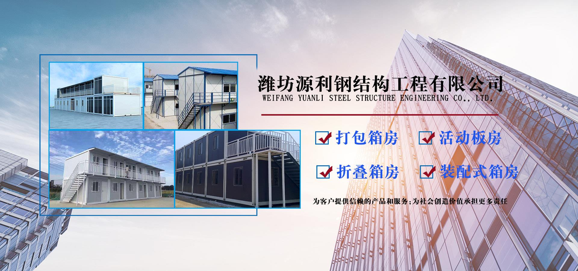 濰坊源利鋼結(jié)構(gòu)工程有限公司成立于2015年,是一家從事活動房屋,鋼結(jié)構(gòu)設(shè)計(jì)、制作、安裝為一體的公司。公司坐落于風(fēng)景秀麗的藍(lán)寶石之鄉(xiāng)昌樂開發(fā)區(qū),占地約60畝,年加工生產(chǎn)能力到40萬平米,現(xiàn)已發(fā)展成本地較大的鋼結(jié)構(gòu)企業(yè),同時(shí)也已跨入集成房屋研發(fā)、推廣企業(yè)行列。公司配備了全套的箱房流水線生產(chǎn)設(shè)備,包含了全自動冷彎成型設(shè)備、流水自動涂裝線、沖壓型材生產(chǎn)線以及全套的配套設(shè)備,標(biāo)準(zhǔn)化、模具化生產(chǎn)加工,年生產(chǎn)5000套打包箱,產(chǎn)品保障。 公司主要產(chǎn)品有:鋼結(jié)構(gòu)工程加工、制作、安裝;各類活動板房、打包箱房、裝配式箱房、折疊箱房、圍擋、料棚、異型H型鋼、屋面板、墻面板、樓承板,C型鋼,Z型鋼;馬路隔離護(hù)欄等相關(guān)產(chǎn)品。